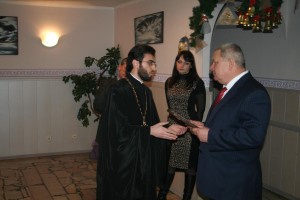 Від імені Оболонського благочинного прот.Володимира Терещука, настоятеля храму Різдва Христового прот.Олександра Голода, від себе особисто отець Олексій побажав ліквідаторам аварії на ЧАЕС доброго здоров’я, сімейного затишку, допомоги Божої у несінні життєвого хреста та привітав присутніх з наступаючими святами, принісши в дар ікону Різдва Христового.