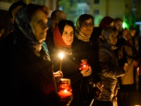 Незадолго до полуночи духовенство и прихожане вышли на крестный ход вокруг храма, который по уставу завершился перед закрытыми дверями храма, символизирующими собой закрытый Гроб Господень. Здесь началась Пасхальная утреня и впервые в этом году было провозглашено: «Христос Воскресе».