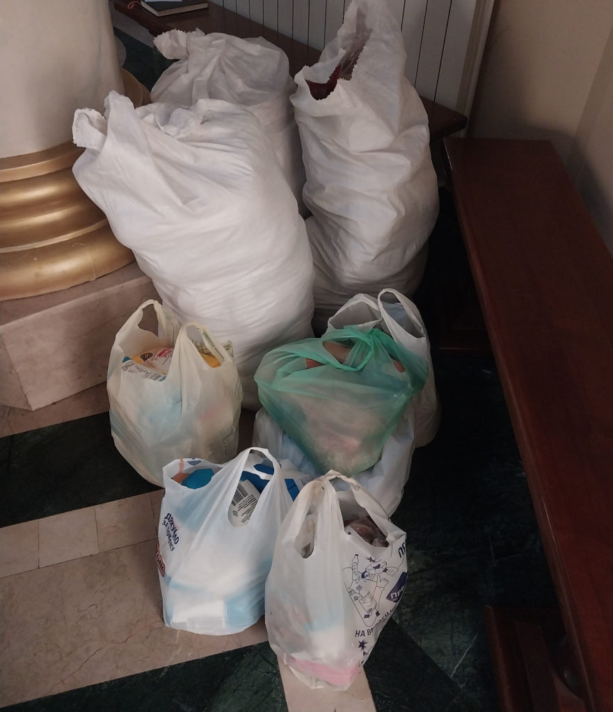 Від нашого храму були передані продуктові набори інвалідам — чонобильцям Оболонського району, зібрані прихожанами храму.